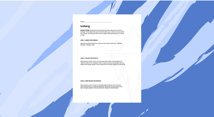 Description: Students can visualize the perceivable traits of their culture and heritage, and lesser visible or unconscious aspects of their culture.
