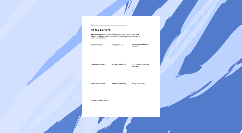 Educators can have students learn about each other through these teachable lessons and activities that can be used for in-person instruction or completed as homework. Click the buttons below to download and print each activity.